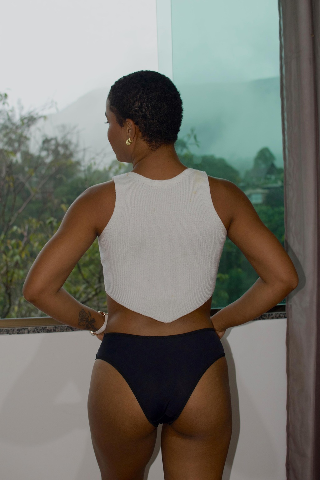 Calcinha confeccionada com microfibra lisa (POLIAMIDA) e renda, utilizamos elástico sanduíche de microfibra para dar um acabamento fino e delicado à peça.