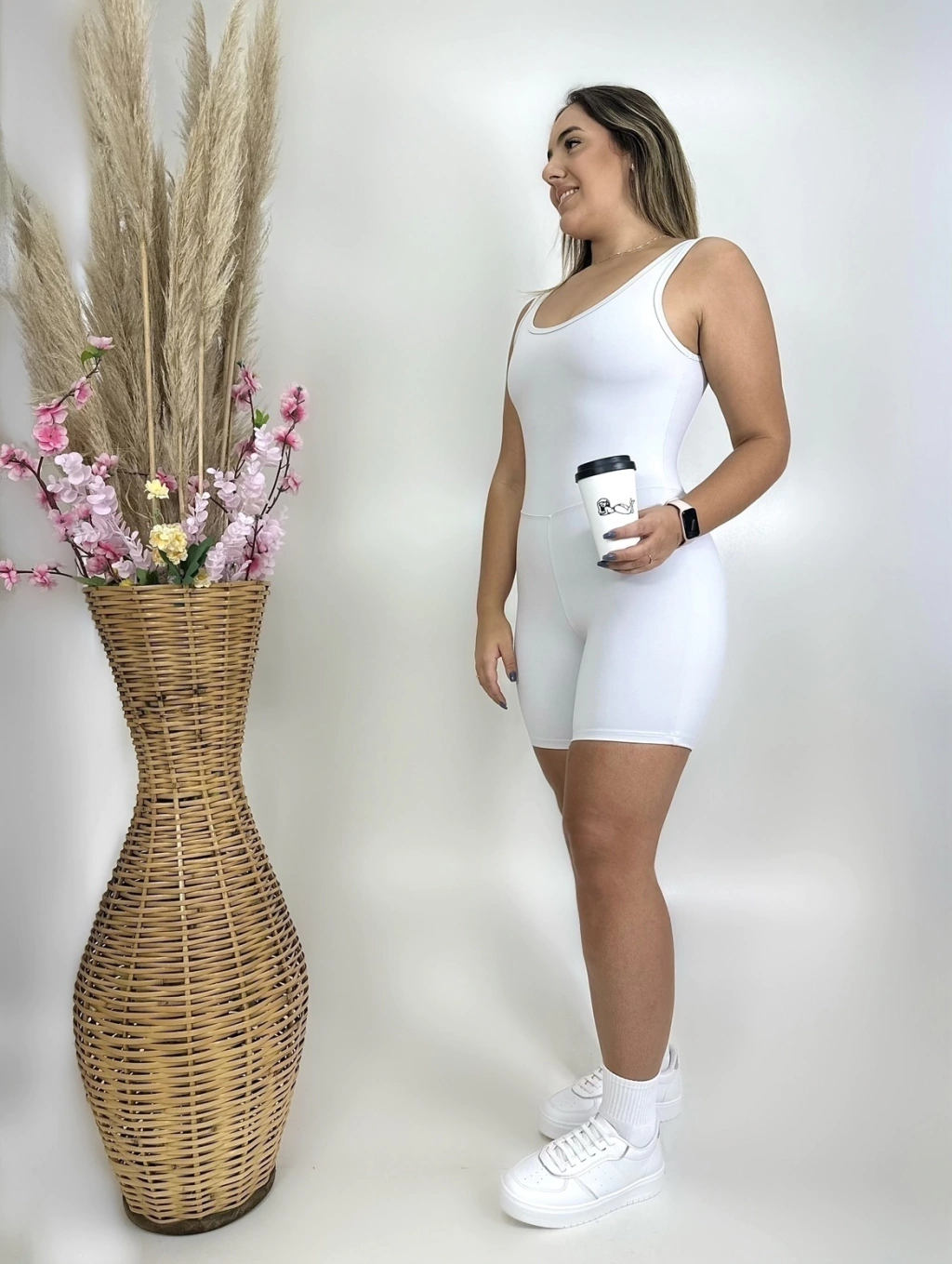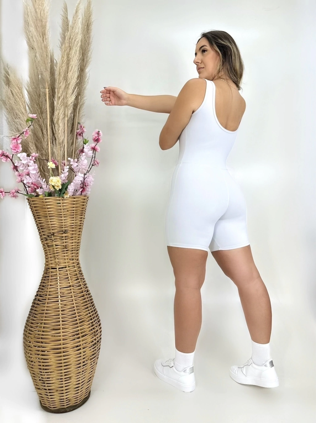 O design do macaquinho é anatômico e possui compressão moderada, o que modela o corpo com leveza e segurança, permitindo liberdade total de movimento. As costuras são estrategicamente posicionadas para evitar atritos e garantir uma experiência sem incômodos. O decote e as alças ajustadas valorizam o busto e os ombros, enquanto a região do quadril é suavemente estruturada para proporcionar sustentação e definir a silhueta.