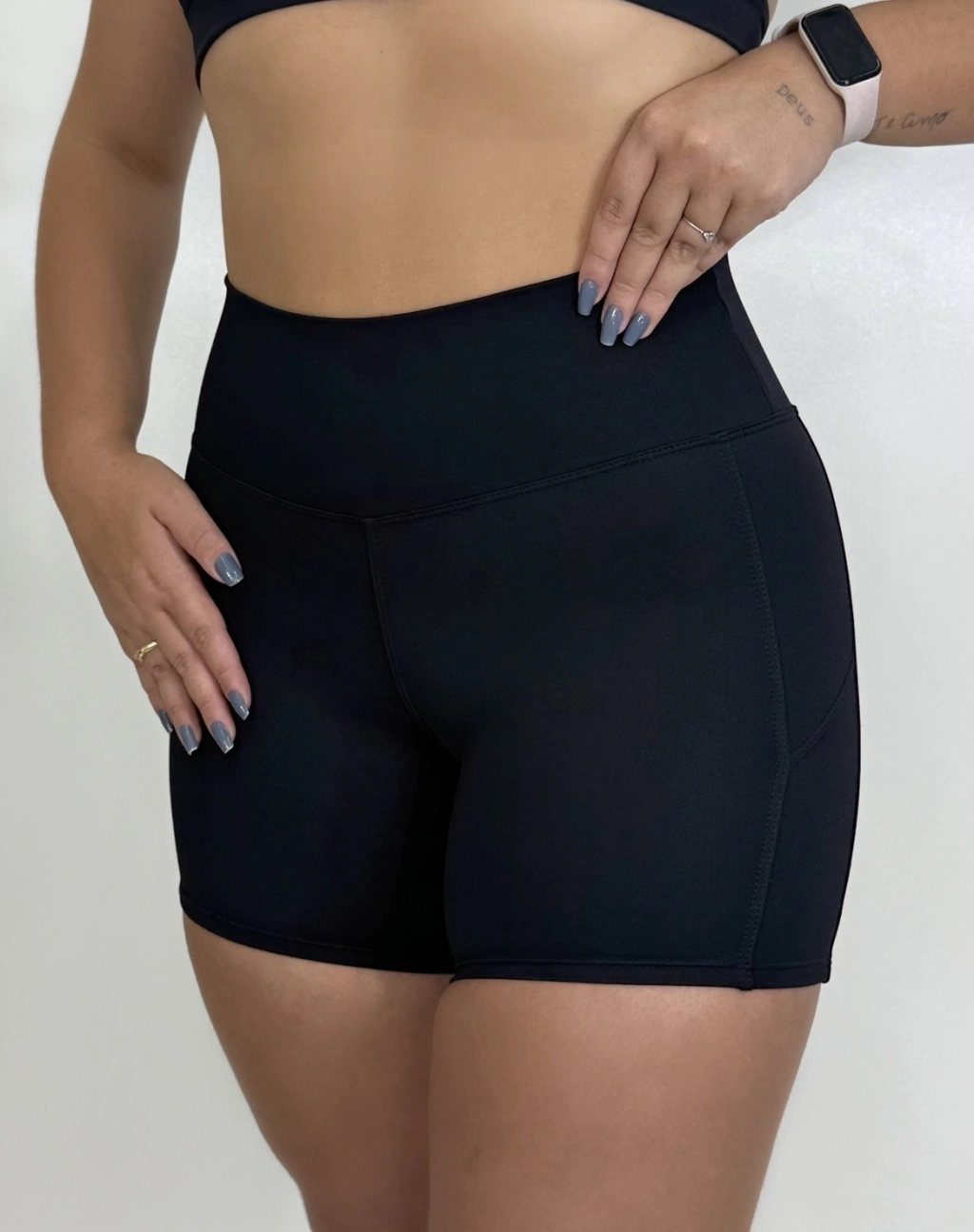 O design do short foi pensado para dar suporte e liberdade de movimento. O cós alto e anatômico proporciona uma leve compressão na região abdominal, ajudando na definição da silhueta e oferecendo segurança durante os movimentos. Além disso, o short conta com costuras estratégicas e reforçadas, minimizando qualquer possibilidade de atrito ou desconforto, mesmo em treinos prolongados ou atividades de impacto.
